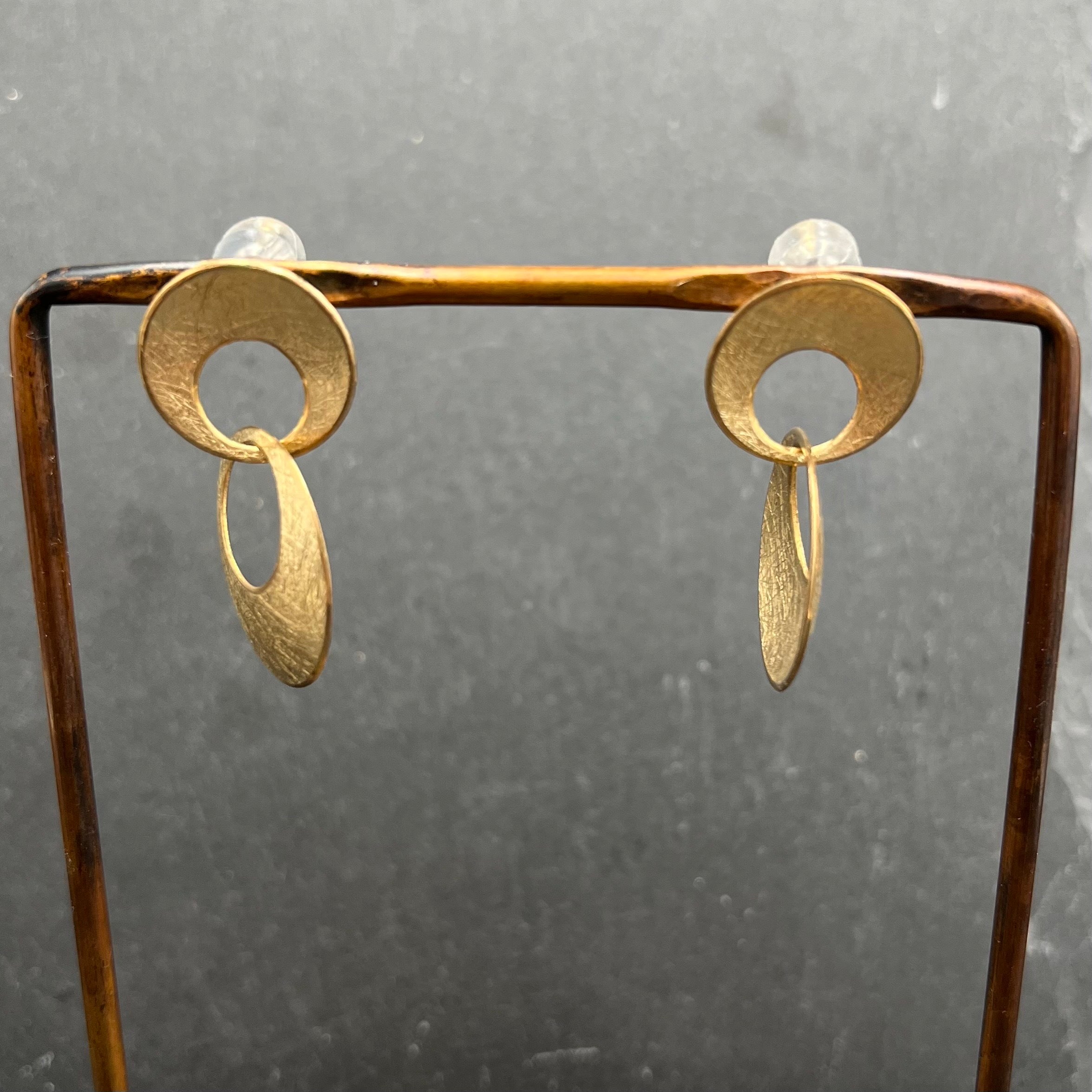 This pair of earrings are made with 14k yellow gold fill, and have a lovely scratched texture that is Jared Porter's signature finish. They are secured to the ear using a post.