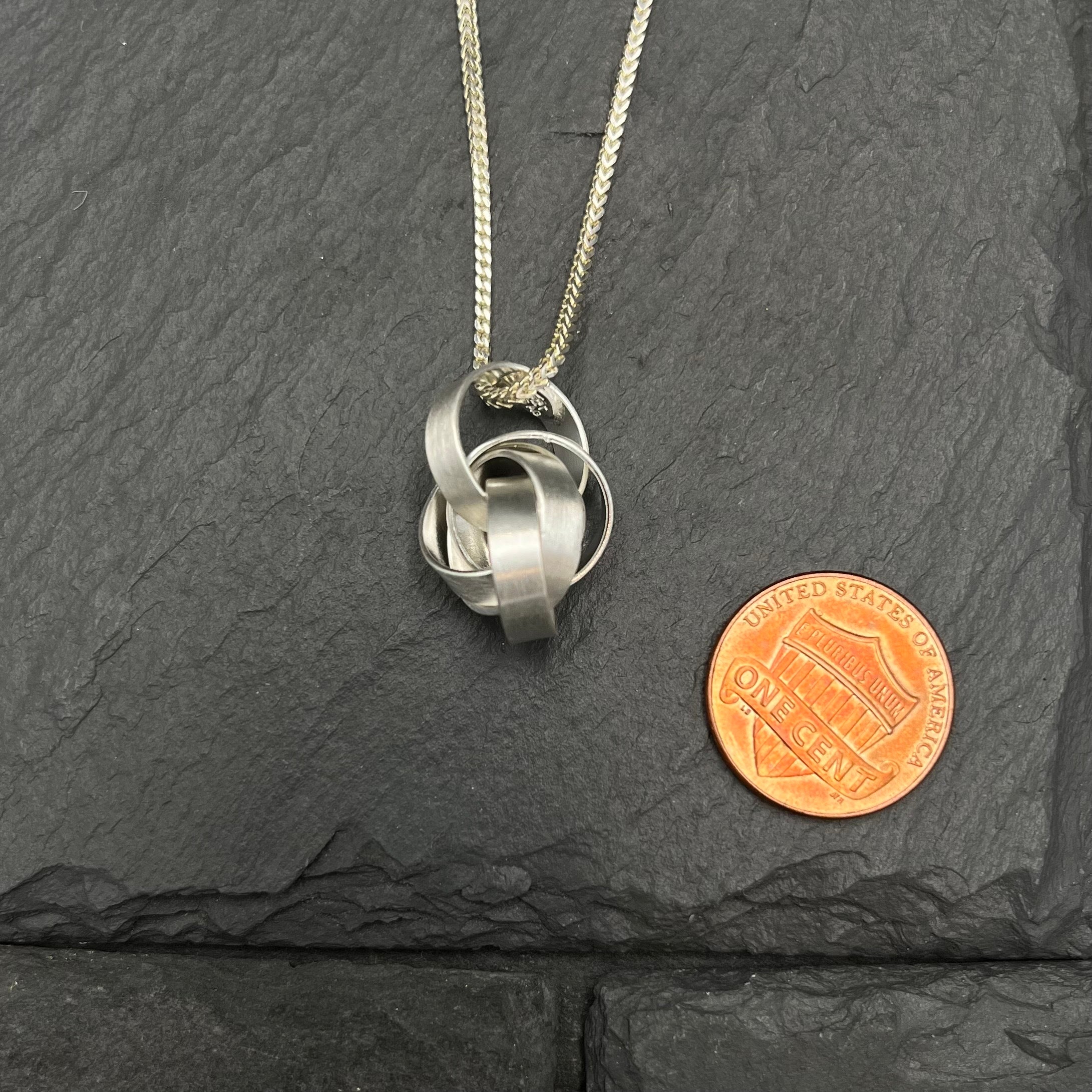 Sterling silver pendant made up of 5 connected silver rings, on an 18" sterling silver chain.