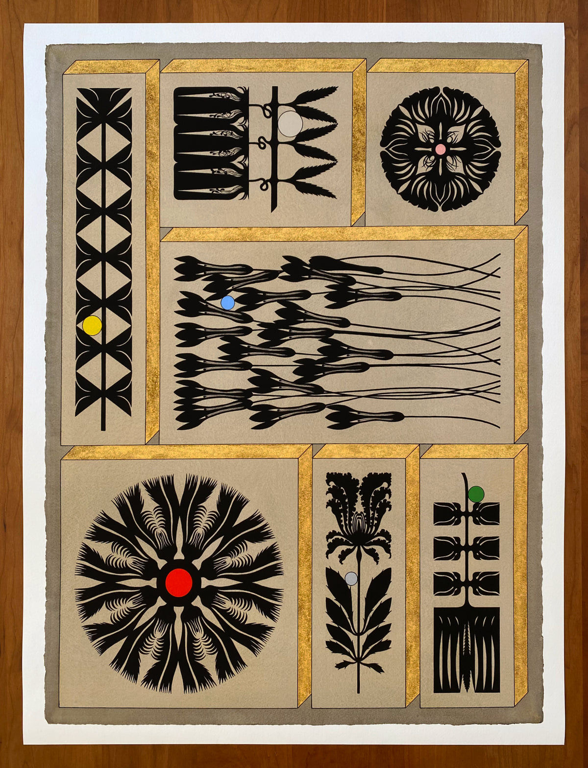 Known as Strange Dirt, Denver based artist Marsha Robinson's work is highly distinctive with a unique flare of grace and symmetry. She creates full and elegant botanical imagery embraced by bold designs. Her compositions combine both organic and disciplined properties allowing her work to possess a certain fluidity while still maintaining order and structure.