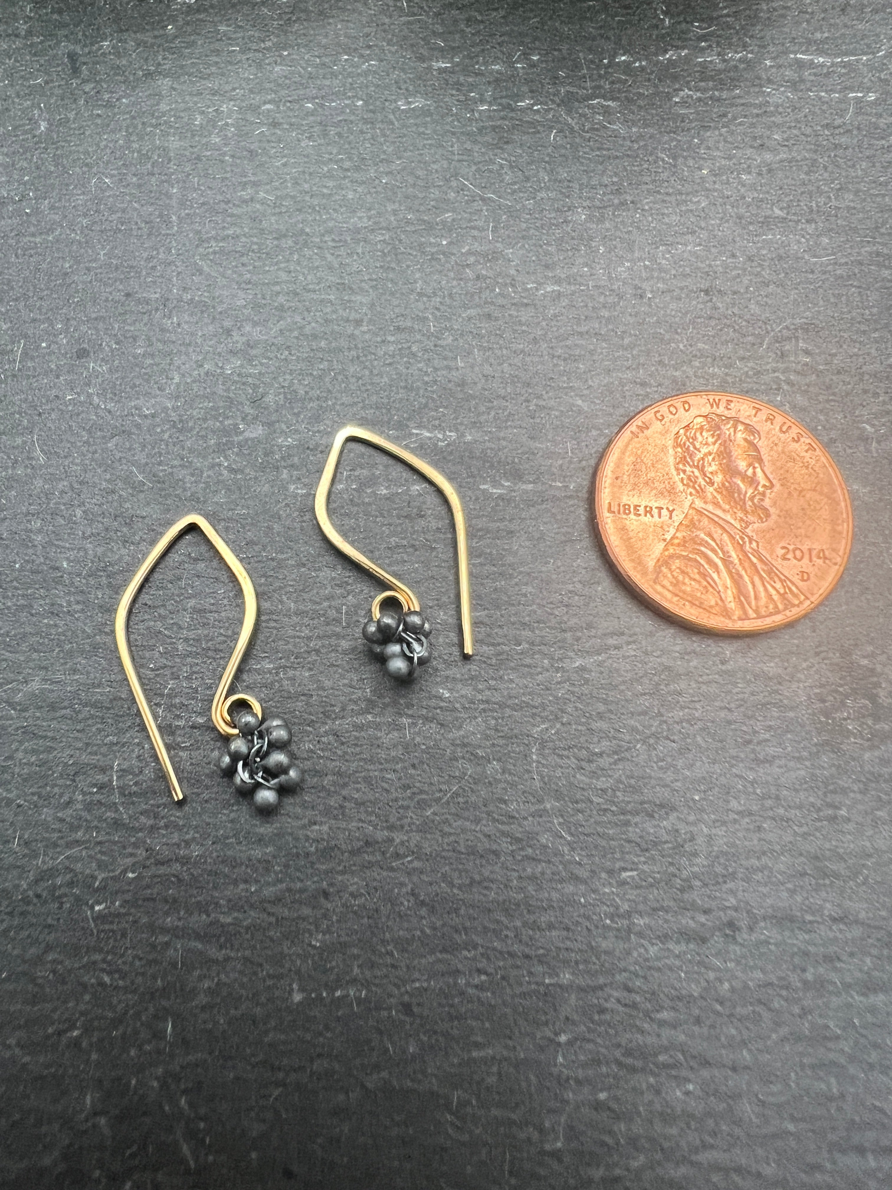 A fun pair of earrings made from gold fill chain adorned with cascading oxidized sterling silver spheres.